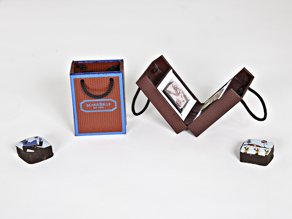 MarieBelle Box Bag Little Boxes that look like tote bags that hold two little MarieBelle truffles.