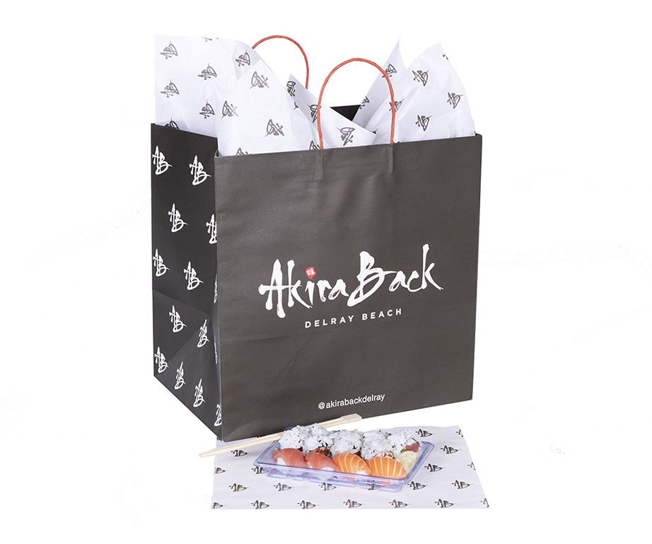 Sushiro White Paper Bags Paper Shopping Bags Take Out Bags Recycled Shopping Bag Upscale Packaging Design Twisted Paper Handled Shopping Bag, Recycled And Recyclable FSC Certified Paper Made in the USA